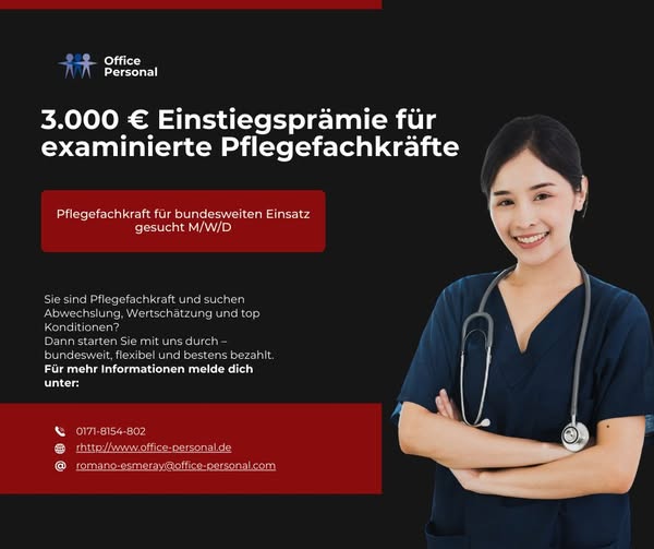 Pflegefachkräfte (m/w/d) – bundesweite Einsätze mit 3.000 ¤ Einstiegsprämie