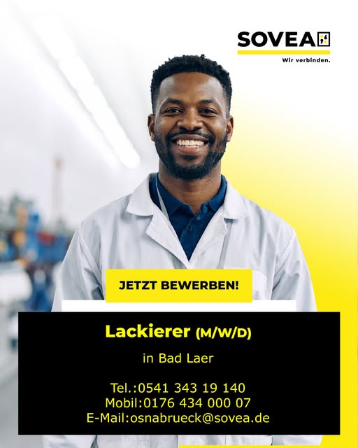 Wir suchen für unseren Kunden in Bad Laer einen Lackierer (m/w/d)! -Nur 1 Schicht -familiäres Arbeitsklima -sehr gute Bezahlung ...