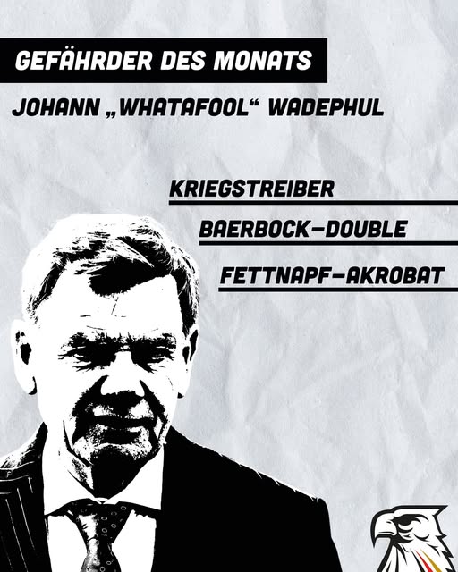 Gefährder des Monats: Johann ¥Whatafool“ Wadephul Kriegstreiber – Baerbock-Double – Fettnapf-Akrobat Warum bloß hat Friedrich Merz ausgerechnet diesen unbeholfenen und weithin unbekannten Provinzpolitiker aus dem hintersten Winkel Schleswig-Holsteins hervorgeholt und zum Bundesminister des Auswärtigen gemacht? Gut, eins haben wir verstanden: Merz wollte sich von Anfang an gar nicht erst um die vermurkste deutsche Innenpolitik kümmern, weil ihn die ¥Brandmauer“-Sozis auf diesem Terrain sowieso keinen Stich machen lassen. Statt dessen wollte der Lügenfritz aus dem Sauerland vor seinen in Serie gebrochenen Wahlversprechen auf die internationale Bühne flüchten und sich als größter Weltpolitiker aller Zeiten einen schlanken Fuß machen. Und dafür brauchte er eben als Sidekick einen blassen und unauffälligen Tolpatsch, der sich noch instinktloser anstellt als er selbst und ihm auf gar keinen Fall die Show stiehlt. Damit das auch funktioniert, musste Merz freilich die Latte schon ziemlich tief legen. Johann Wadephul, der verknautschte CDU-Außenpolitiker, der so schön markige Kriegstreiber-Parolen ganz auf Merz-Linie zum Besten geben konnte, schien da genau die richtige Wahl. Ein Jasager als Platzhalter im Auswärtigen Amt, was sollte da schon schiefgehen. Das Kalkül ist so semi-gut aufgegangen. Auch wenn es nicht so einfach erscheinen mochte, Johann Wadephul schafft es immer wieder, die Peinlichkeitsrekorde des Kanzlers noch zu überbieten. Den ersten großen Sprung ins Fettnäpfchen leistete er sich noch vor der vorgezogenen Bundestagswahl im Februar, als ihn kaum jemand so richtig als künftiges Regierungsmitglied auf dem Schirm hatte. Hocherfreut nahm Wadephul den Fake-Anruf der cleveren russischen Satiriker ¥Vovan und Lexus“ entgegen, die sich als Mitarbeiter des ukrainischen Präsidentendarstellers Wolodymyr Selenskyj ausgaben. Ganze zwanzig Minuten sprach er mit dem getürkten Präsidentenbüro, versprach den vermeintlichen Ukrainern alles, was sie wollten, Taurus-Marschflugkörper inklusive, und versicherte hoch und heilig, Russland werde ¥immer ein Feind und eine Gefahr für unsere europäische Sicherheit sein“. Eine derart plumpe Feinderklärung ist so ziemlich das Gegenteil von diplomatischer Kunst. Ein Diplomat, der ¥Nein“ sagt, ist keiner, wusste schon Talleyrand. Und diesen törichten Anti-Diplomaten setzt Friedrich Merz in das einst von Bismarck, dem Meister der Staatskunst, der Bündnispolitik und der außenpolitischen Rückversicherung, begründete Auswärtige Amt. Wer da geglaubt haben sollte, schlimmer als mit drei Jahren Baerbock könnte man dieses einst angesehene Amt nicht entweihen, der sah sich getäuscht. Wadephul macht, nachdem er seine Vorgängerin mit schleimigen Komplimenten und albernen Geschenken verabschiedet hatte, gerade so weiter mit der wirren ¥werteorientierten“ Außenpolitik. Und da wir gerade von Bismarck sprechen: Dem von Baerbock instinktlos umgetauften traditionellen ¥Bismarck-Zimmer“ hat CDU-Wadephul natürlich auch nicht seinen Namen wieder zurückgegeben. Dafür müssen wir wohl auf den ersten AfD-Außenminister warten. Während nun also Annalena Deutschland als spätpubertierende UNO-Influencerin auf ihrem Versorgungsposten in New York zur Lachnummer macht, baerbockt Johann Wadephul munter weiter in Berlin. Die von der ¥grünen“ Außenministerin und ihrer NGO-Kamarilla mit Aufnahmezusagen ausgestatteten Afghanen-Clans lässt Wadephul Flieger um Flieger weiter nach Deutschland verfrachten. Der pakistanischen Regierung geht er dabei mit penetranten Forderungen auf die Nerven, nur ja keinen seiner Schützlinge nach Afghanistan zurückzuschicken und die bereits Abgeschobenen gefälligst wieder zurückzuholen. Nur folgerichtig, dass er bei kritischen Nachfragen zur Millionenförderung für dubiose Asyllobby-NGOs aus Mitteln des Auswärtigen Amtes genauso mauert wie die nach New York weggestöckelte ¥Grüne“. Die Unterlagen dazu erklärt Wadephul kurzerhand zur ¥Verschlusssache“. Wenn er zwischen all diesen Machenschaften noch Zeit hat, kommentiert er die US-amerikanische Politik genauso präpotent und ahnungslos wie der ZDF-Falschmelder Elmar Theveßen, wirbt in Indonesien für die Einwanderung von ¥Fachkräften“ für das Gesundheitswesen, die gar keine sind, klopft weiter knarzige Kriegstreiber-Sprüche, plädiert für die sofortige Wiedereinführung der Wehrpflicht, brüskiert Ungarn mit der Forderung nach ¥besseren Haftbedingungen“ für einen sich ¥Maja“ nennenden genderverwirrten Linksterroristen aus der als ¥Hammerbande“ bekannten Gruppe ¥Antifa Ost“. Kopfzerbrechen auch in den eigenen Reihen verursachte Wadephul mit der kryptischen Aussage, er sei ¥dafür, dass die Bundesregierung genau prüft, was wir für die lebenden Opfer tun können“, nämlich der deutschen Besatzung in Polen, die vor mittlerweile auch schon mehr als achtzig Jahren zu Ende ging. In Warschau freute man sich garantiert über diese Steilvorlage, um die absurden Billionen-Reparationsforderungen wieder aufzuwärmen. Aus der Innenpolitik kann Wadephul seine Finger ebenfalls nicht lassen. Er werde es ¥niemals zulassen“, dass die AfD an die Macht komme, verkündete er im Bundestag. Müßig der Hinweis, dass in einer Demokratie immer noch die Wähler über einen Machtwechsel entscheiden und nicht der amtierende Außenminister. In der deutschen unserdemokratischen Brandmauer- und Parteiverbotsrepublik ist man über solche Feinheiten kartellübergreifend schließlich schon lange hinweg. Im In- und Ausland machte sich Johann Wadephul mit all diesen Manövern in atemberaubender Geschwindigkeit zu einer ähnlichen Witzfigur wie sein Chef, der Kanzler, der immer mal wieder als Spendieronkel und skurrile Hintergrunddekoration auf internationalen Konferenzen anzutreffen ist. Manche ausländischen Beobachter machen sich einen Spaß daraus, seinen Namen auf eine ganz bestimmte hinterhältige Weise englisch auszusprechen: ¥Whata