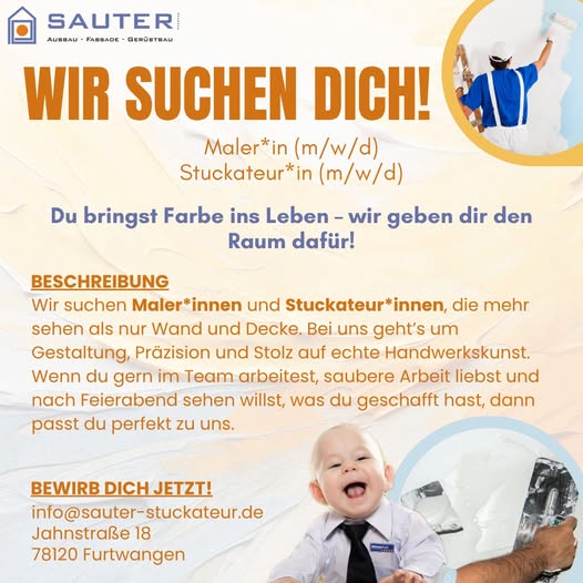 #wirsuchendichfürunserteam #sauterstuck #maler #stuckateur #jobsinfurtwangen