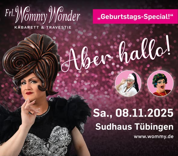Ihr Lieben! Wie doof kann man sein? Da hab ich doch bei allen Flyern, Bildern und Videos zum Auftritt im Sudhaus am 08. November den Wochentag falschgesetzt, und keinem der fünf Leute, die damit zu tun haben und gegenlesen, ist es aufgefallen... Nur Martin Vogt - herzlichen Dank dafür!!! Insofern der Versuch, den Fehler bestmöglich zu korrigieren: Gastspiel im Sudhaus Tübingen an meinem Geburtstag ist SAMSTAG, 8.11. (Nicht wie angekündigt Freitag, 8.11.) Ich bitte herzlich um Entschuldigung und Milde und Nachsicht und Vergebung, ich werde mich freiwillig geißeln, teeren, federn und nackt in Scherben wälzen... Hier das korrekte Bild...