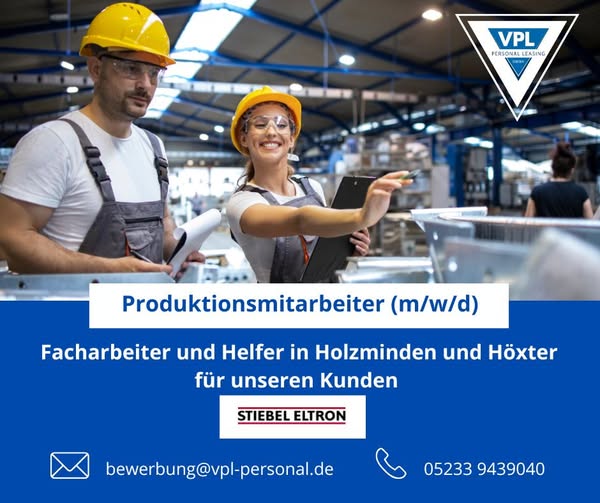 Für die Wärmepumpenproduktion suchen wir mehrere Produktionshelfer, Staplerfahrer, Elektroniker, Metallbauer/Schweißer, Maschineneinrichter, Logistiker, Löter, Handwerker (m/w/d) und weitere Berufsgruppen, die unseren Kunden langfristig unterstützen möchten